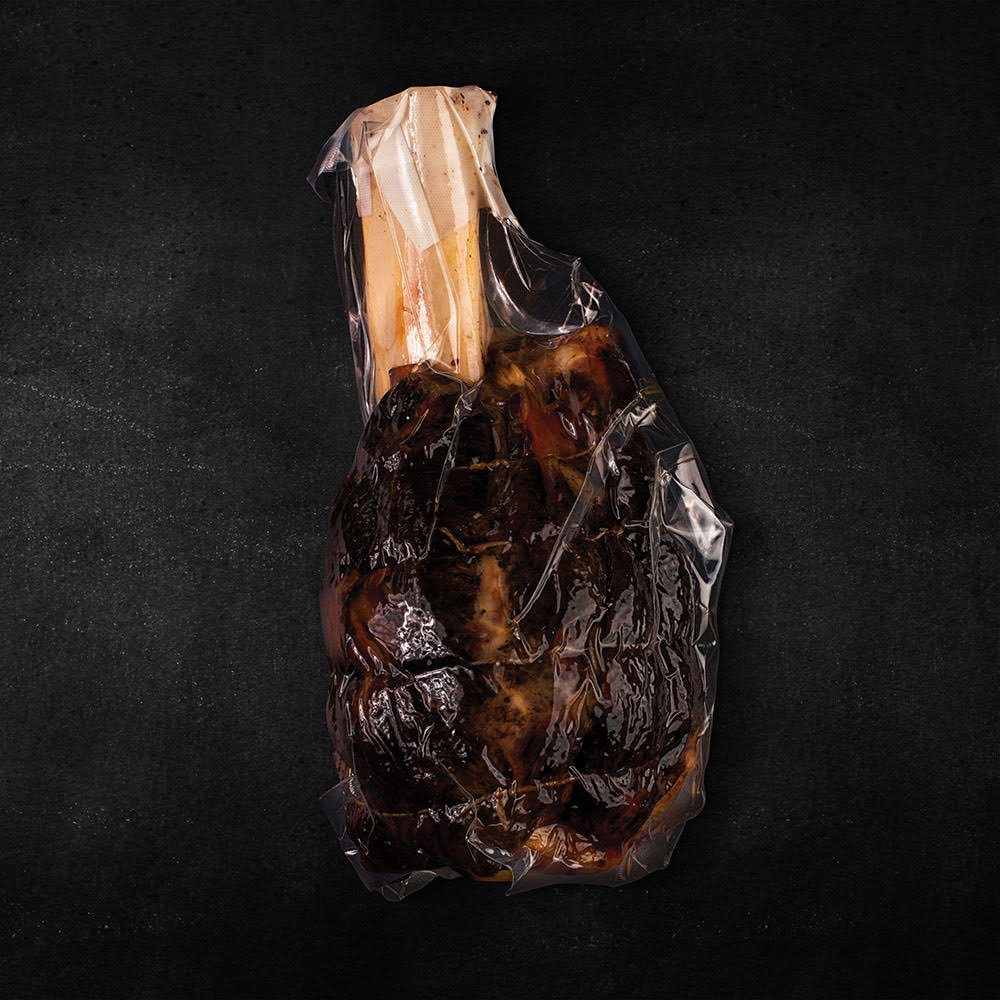 Dopo una cottura lenta di circa 6 ore compresa l' affumicatura, tutto il tessuto connettivo dello stinco di Sorana diventa morbida gelatina e con lei la carne assume un gusto semplicemente unico, su questo taglio non troverai un filo di grasso, questo è quello che lo differenzia da un brisket o dal pulled beef, sicuramente più leggero!
